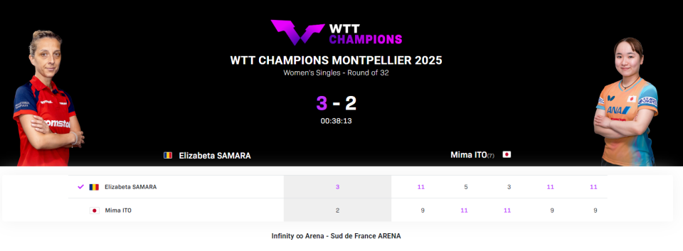 伊藤美诚与大藤沙月二人均一轮游出局,伊藤美诚2-3不敌罗马尼亚36岁老将萨马拉,决胜局伊藤美诚一度以8-3领先,结果被对手实现逆转,9-11仅输2分;