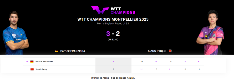 首先来看男单赛场,国乒参赛3人向鹏、陈垣宇、温瑞博全部出局了,还都输掉了外战!向鹏2-3不敌德国名将弗朗西斯卡,要知道向鹏是大比分2-1取得领先的,结果之后的第四局和决胜局,均以8-11输掉了,至此被弗朗西斯卡实现了逆转。