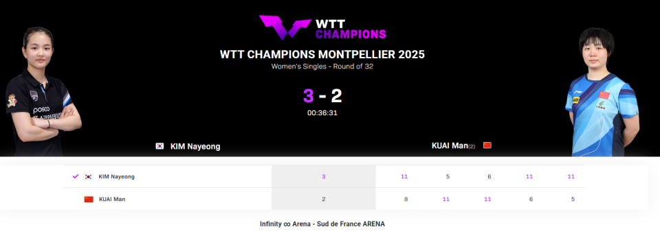 女单前十种子球员中,目前同样有4人出局,分别是头号种子陈幸同、二号种子蒯曼、7号种子伊藤美诚、8号种子大藤大月,至此在两个比赛日过后,男、女单一共有8位种子球员出局,不得不说本次WTT蒙彼利埃冠军赛,真的是冷门不断......