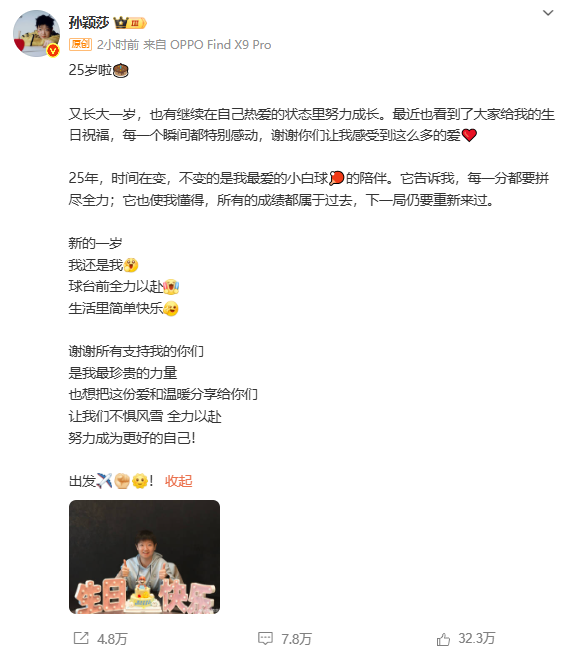 孙颖莎发布25岁生日照:“下一局仍要重新来过”!马里奥蛋糕藏满细节