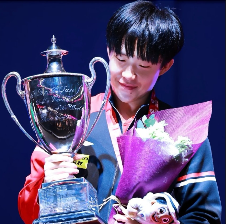 今年5月结束的多哈世乒赛上,王楚钦一路过关斩将,决赛战胜巴西选手雨果-卡尔德拉诺,成为国乒男线第一位左手世锦赛单打冠军,这也是王楚钦首次登顶三大赛男单冠军。