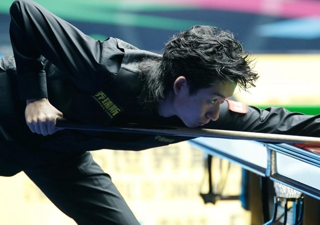 此役,在国锦赛1/4决赛,面对又一位世界排名高于自己的top16名将巴里霍金斯,吴宜泽的状态依旧神勇无比!