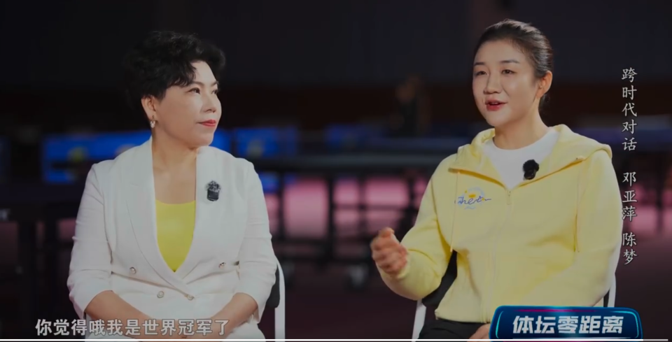 谈笑间,邓亚萍无意间“戳”到了陈梦职业生涯痛点,陈梦“委屈”回应,邓亚萍幽默附和