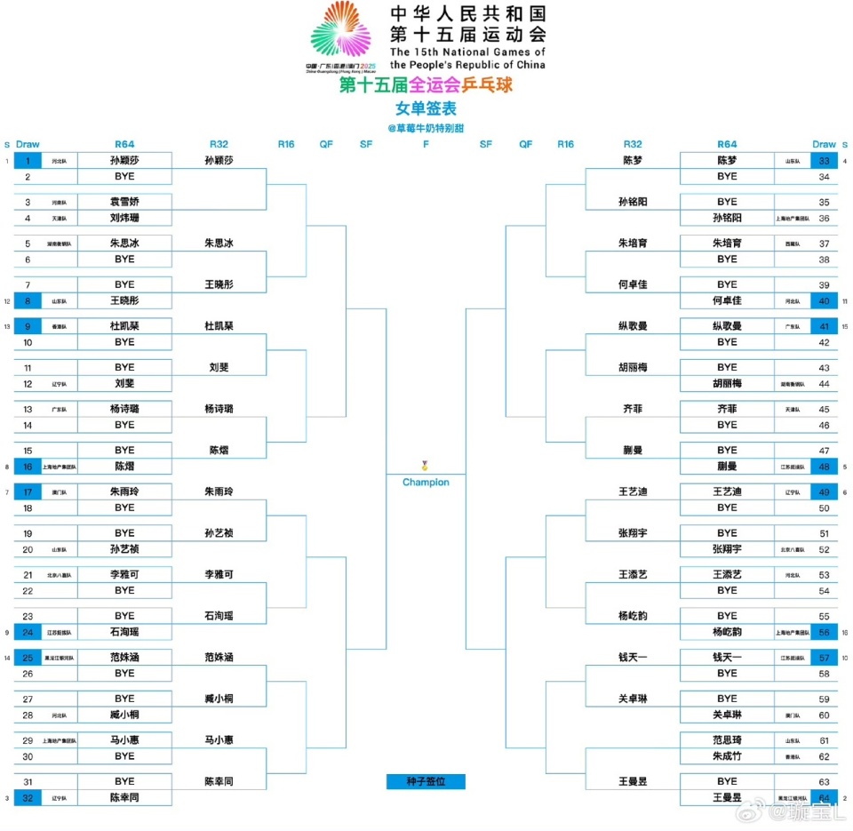 北京时间11月9日,2025年全运会乒乓球男单32强和女单32强出炉,一群世界冠军争夺一个全运会冠军,真的比奥运会更激烈!