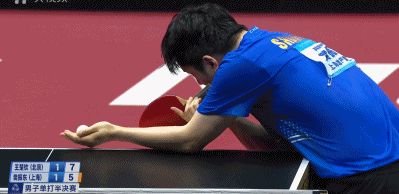 局分打平,但这时候场面已经开始向樊振东倾斜。他高抛的变化开始给王楚钦压力,加上王楚钦只用一套发球,到现在变化都抖搂差不多了,前三板的形势此消彼长,让樊振东的战术更单纯:尽量拧起来打相持——然后就是一波开局6-2领先。王楚钦追到6-4,樊振东叫了暂停;之后到了7-5,樊振东这个高抛又出场了:这次是个死转直线下旋。