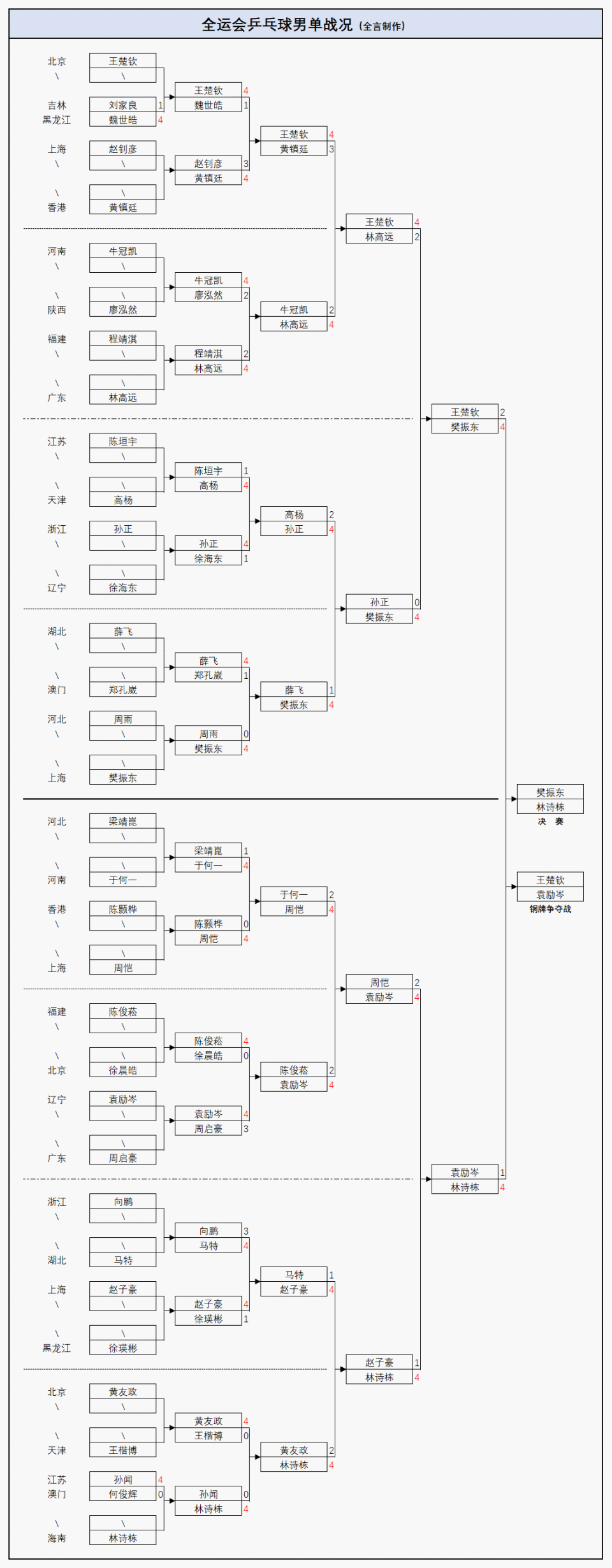 林诗栋:4-0孙闻(江苏)、4-2黄友政(北京)、4-1赵子豪(上海)、4-1袁励岑(辽宁)。