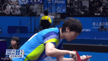 王曼昱第一局中段就发了反手发球;这次孙颖莎反手直接上去拧,得分了。