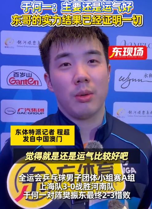 于何一说:“所以说运气比较好,他这一阵打比赛比较多,可能比较累一些。没有单打那么兴奋。东哥的实力如何,结果已经证明了一切。”