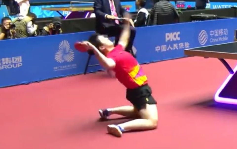 几个男人能做到?28岁樊振东不慎双膝跪地 仅靠核心力量原地弹起