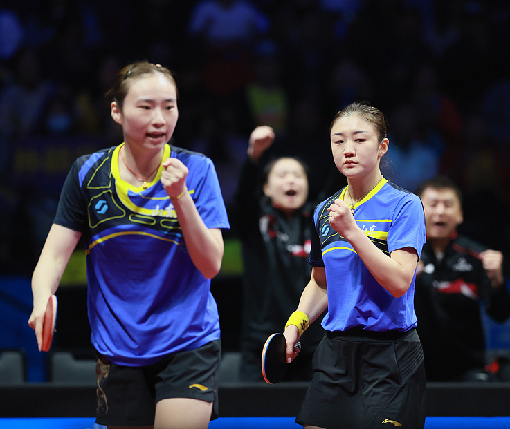 其中陈梦和王晓彤搭档双打,与何卓佳和王添艺组合,率先掀起“战火”。