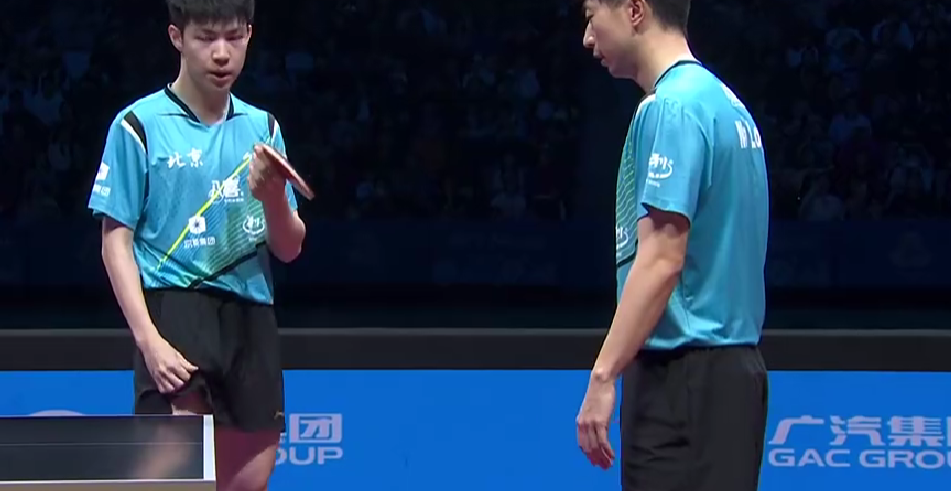 第四局,樊振东3—1取得领先,王楚钦选择暂停。