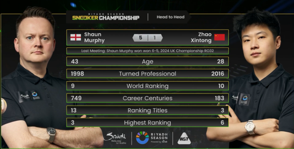 利雅得锦标赛:赵心童4-2力克墨菲进半决赛,将战小特!罗伯逊零封囧哥