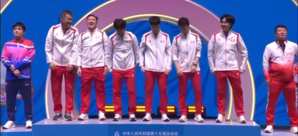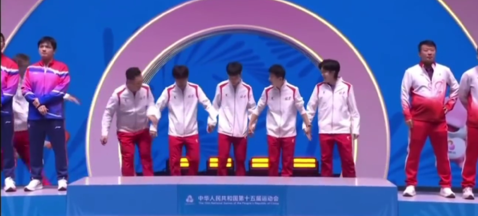 11月21日消息,11月20日晚上结束的全运会乒乓球男团决赛,马龙、王楚钦、黄友政的北京队以 3-1 战胜樊振东、许昕、周恺的上海队,时隔32年重夺全运会男团冠军。赛后颁奖仪式发生了有趣的一幕,王楚钦率先登上了领奖台,马龙瞪他一眼,大头赶紧下台等着大家一起牵手登台。