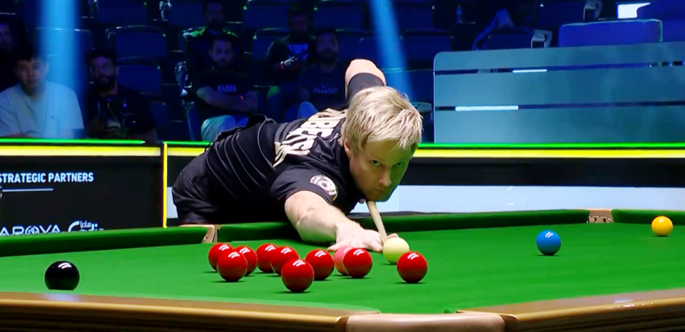 首场半决赛,澳洲火炮尼尔·罗伯逊对阵小钢炮马克·艾伦。前两局,罗伯逊都是抓住艾伦失误,打出两杆60+,2-0领先。第3局,罗伯逊两次上手,再下一城,3-0到赛点。第4局,艾伦单杆91分制胜,挽救一个赛点。
