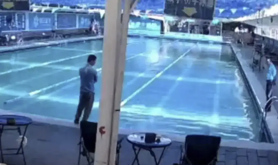 视频画面显示,当时泳池里只有两三个人在游泳,一名救生员就在该男子溺水的地方站着,不时地低头看水边,但没有施救。5分钟之后,另一名救生员过来,观察了一下该男子,又走开了。直到第三名救生员过来,才发现出事儿了,于是三个人才找来杆子,把人捞了上来,这个过程持续了将近30分钟!