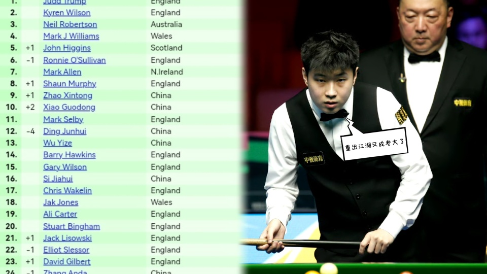 从目前最新的世界排名来看,前十六变化最大的就是火箭和丁俊晖,两人分别扣除英锦赛冠亚军积分之后出现了下滑,前者跌至第五,后者则直接掉出前十,很多球迷担忧后续利雅得大师赛中国龙恐怕没有机会登场了!希望成为新一哥的赵心童能够继续前行扛起大旗,从积分来看,如果这次英锦赛夺冠的话,他能够超越火箭来到第六位。