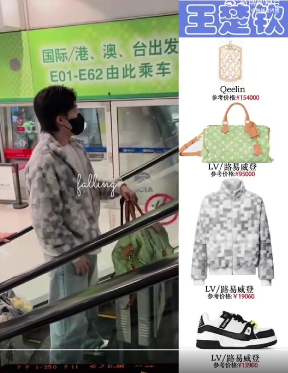 值得一提的是,王楚钦的这一身行头价值超过了25万,胸前佩戴的Qeelin珠宝,一条玫瑰金钻石吊坠,就价值154000元,绿色LV包包价值9.5万,毛绒外套1.9万,LV运动鞋价值1.39万,总价值28万人民币。