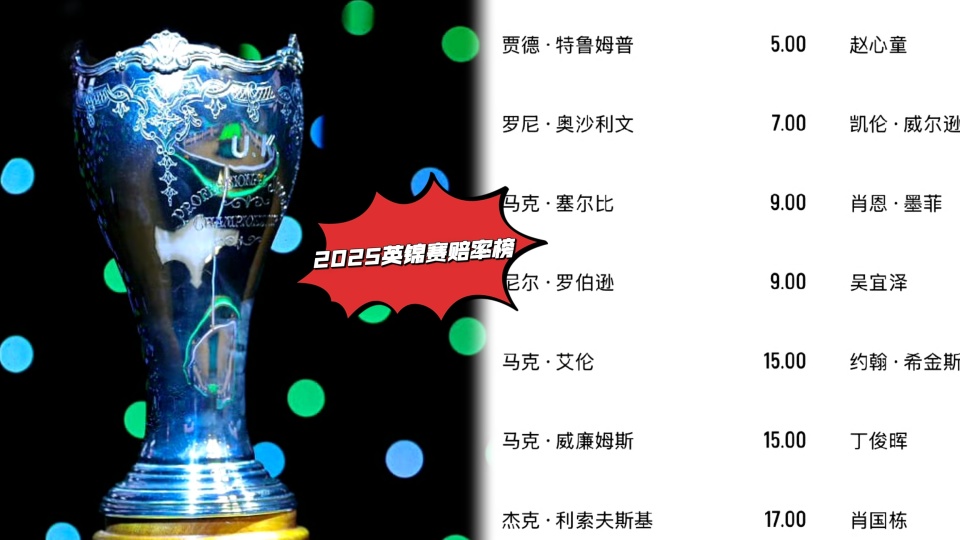 2025英锦赛中国斯诺克夺冠赔率榜:赵心童高居第二,三冠王丁俊晖遗憾被看衰