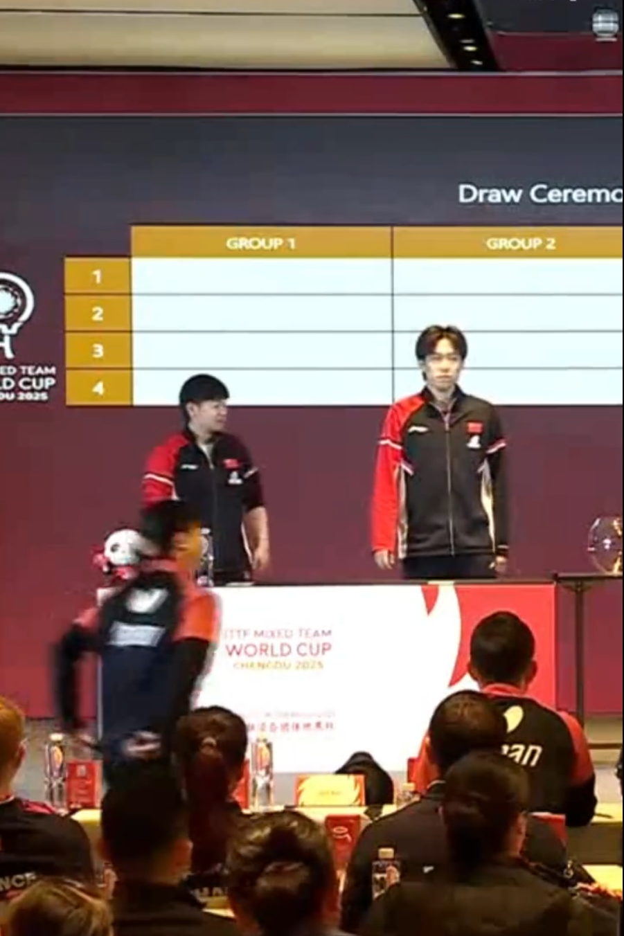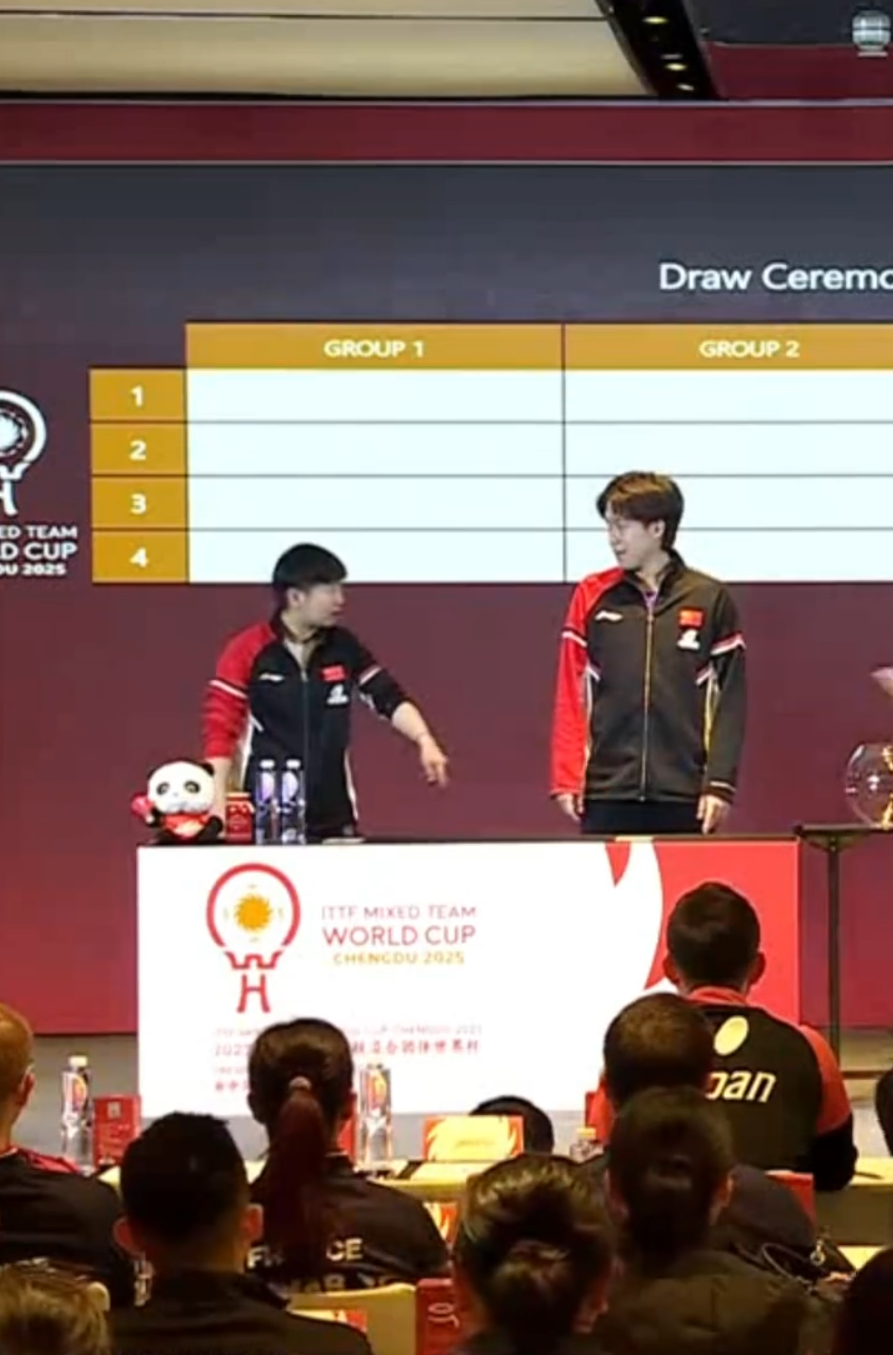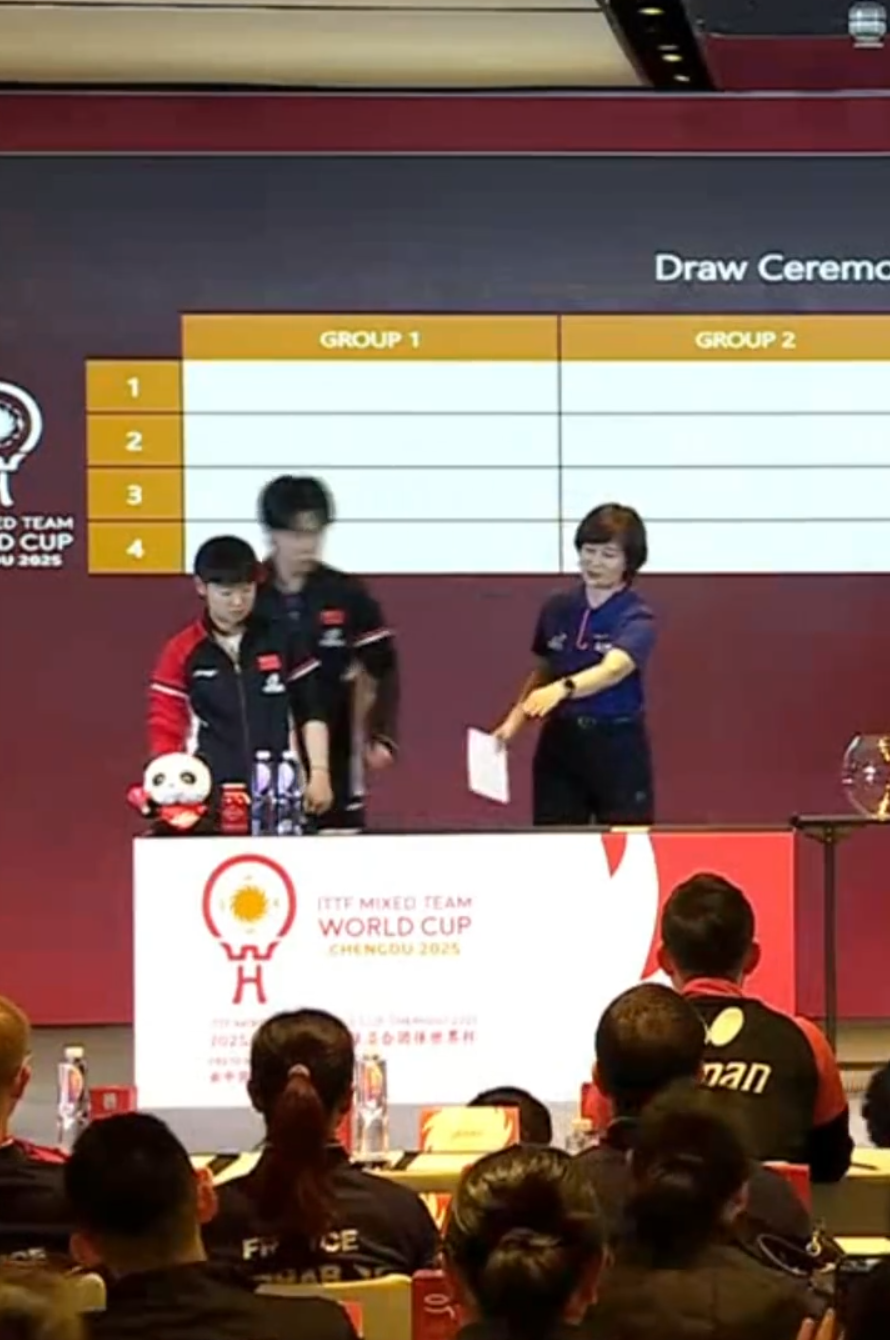 在混合团体世界杯的抽签仪式上,孙颖莎和王楚钦代表国乒先后上台,
