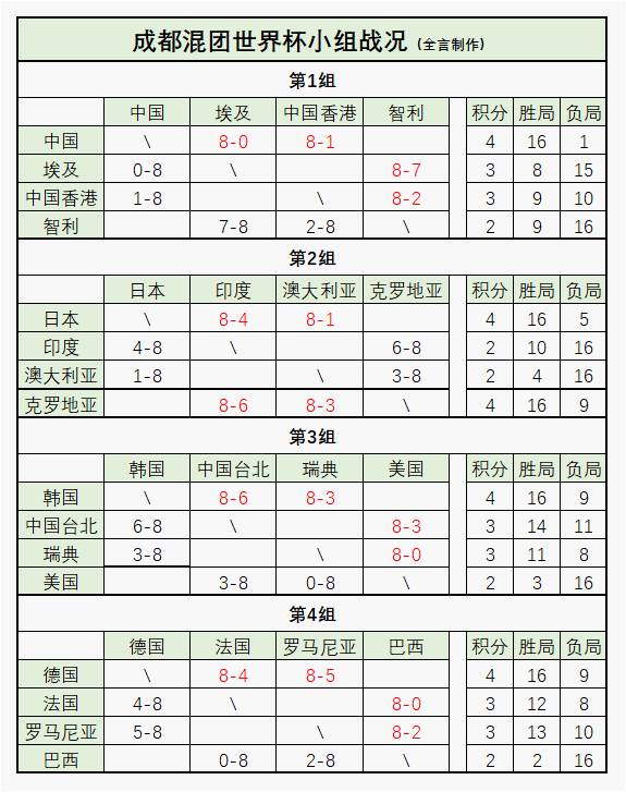 混团世界杯:12月2日赛程公布!诞生8强完整名单,国乒迎战智利