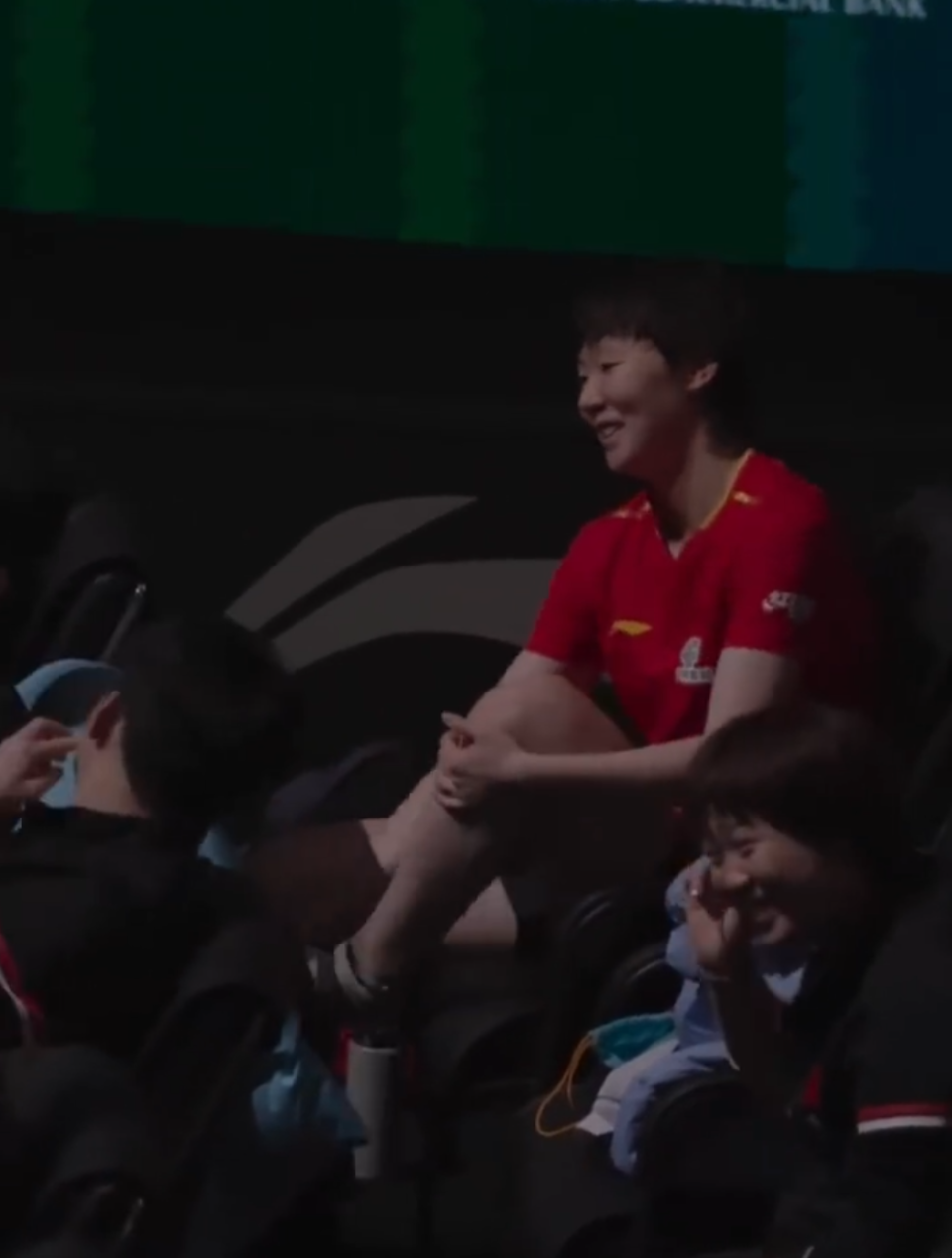 王曼昱3比0胜奥尔特加,获得混团世界杯开门红红,比赛结束后她坐到场边休息,在黑暗之中摸出了一条裤子,但是没想到的是她穿错了裤子,穿到梁靖崑的裤子,
