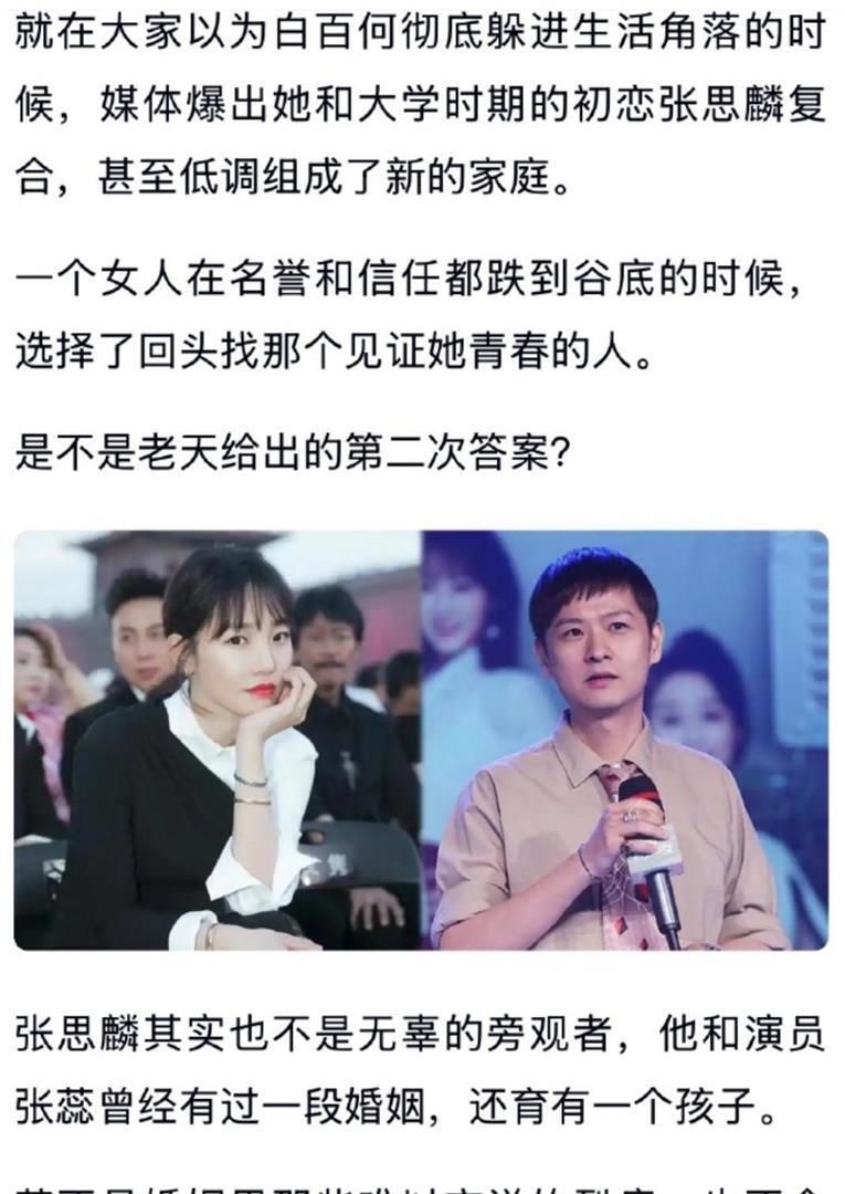 这就形成了“张继科现女友是白百何现任老公的前妻”的绕口令式关系。这个关系链成为舆论关注的焦点。它也成了张继科“当现成爸爸”说法的主要来源。