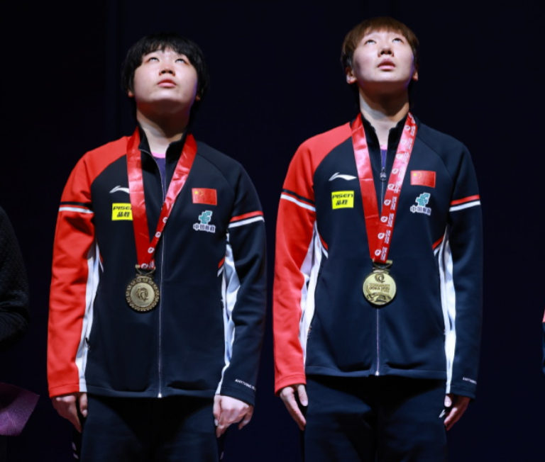 第五盘新科世锦赛女双金牌组合王曼昱/蒯曼登场迎战张本美和/大藤沙月,此战国乒选手只需要赢一局就可以结束整场比赛,二人很快便3-0领先逼对手暂停调整,紧接着7-2丢2分用掉暂停权,后半段10-7被对方挽救2个赛点,但最终还是稳住阵脚以11-9终结整场比赛。