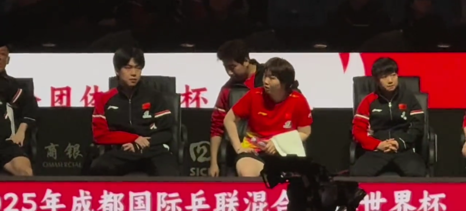 12月6日消息,12月6日晚,2025成都混团世界杯赛场,中国乒乓球队在第二阶段最后一轮以8比4战胜瑞典队,以循环赛九战全胜的完美战绩晋级四强。本场比赛,王楚钦、孙颖莎轮休没有上场,结果蒯曼坐到两人中间,也让球迷们哄堂大笑,纷纷调侃她当了“电灯泡”。