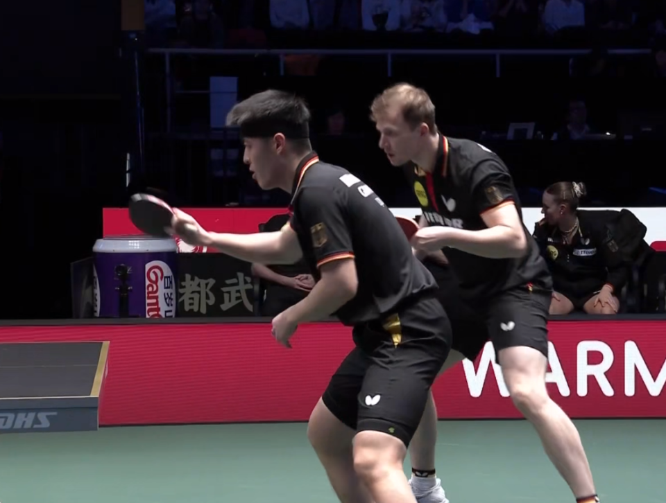 男双吴晙诚/朴康贤对阵杜达/邱党,双方首局连续相持到6平,韩国队发力连续得分拿下。第2局德国队开局6-1领先,又连续冲击压制对手,以11-3顺利扳回1局。此后,第3局韩国组合开局4-1,德国组合调整后将比分咬住,相持到关键分德国队把握住。
