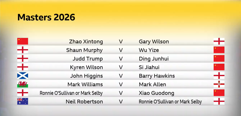 英国锦标赛决赛进行期间,世界斯诺克举行了明年大师赛的抽签活动。随着英国锦标赛的结束,大师赛最终完整签表落地。