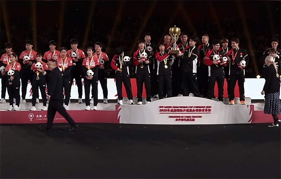 而赛后的颁奖仪式上,蒯曼跟王楚钦捧起奖杯,站在C位上,而在国际乒联担任二把手的刘国梁也是亮相,陪同索林女士一起颁奖。不过刘国梁只跟国乒每位球员都握了手,面对日本队,只是摆了摆手没有跟日本队的球员握手。索林女士是跟冠亚季军选手都握了手,其实刘国梁不跟日本队握手也属正常。