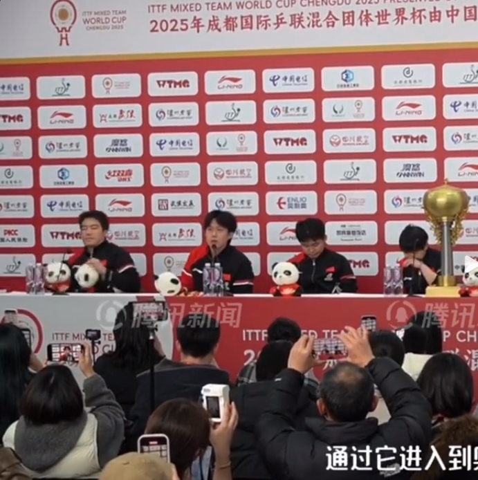 12月8日消息,在12月7日晚上举行的2025国际乒联混合团体世界杯决赛中,中国队8-1击败日本队,蝉联冠军。赛后发布会上,队员们带走吉祥物熊猫,梁靖崑拿走了王楚钦的一个熊猫,表示自己家里人多,把王楚钦逼得直接吐槽:“你道德绑架我!”