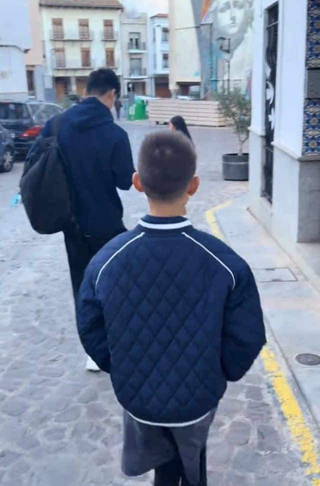 林丹妻儿西班牙游玩,9岁儿子头上俩旋,腿细又长,看着能长到190