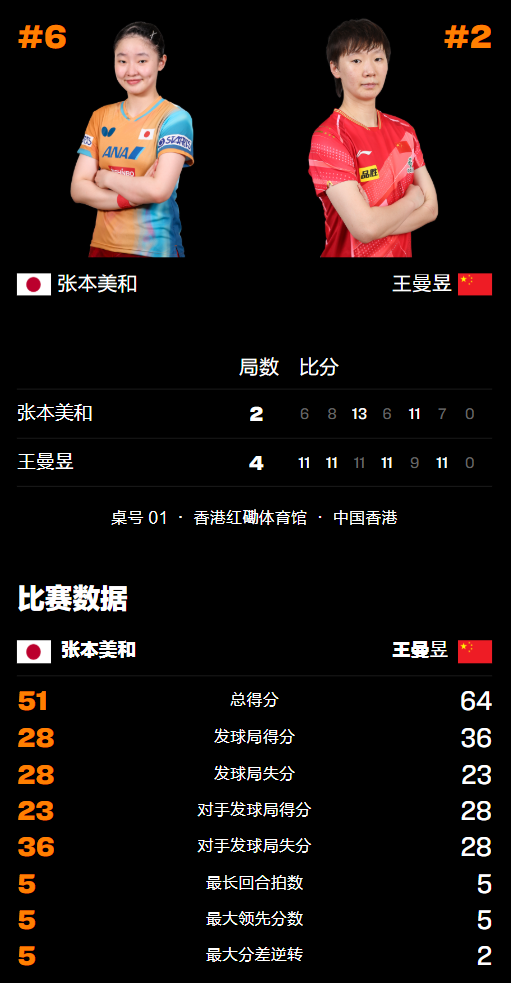 WTT香港总决赛:王曼昱晋级8强再立功!4天2胜且第9次击败张本美和
