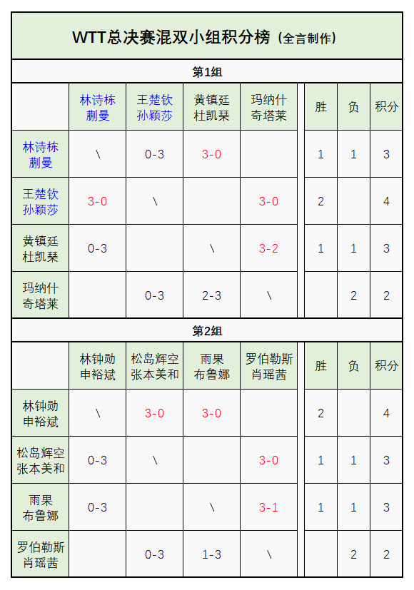 18:00,王楚钦/孙颖莎VS黄镇廷/杜凯琹(中国香港);