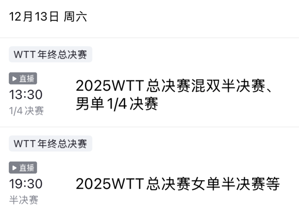 北京时间12月12日,香港总决赛单打四分之一决赛拉开战幕。在女单项目中,8强国乒占了5席,其中包括一场国乒内战,国乒女单包揽本次赛事4强以及冠亚军的希望很大,现在已经结束2场8强战的比赛。4-1!王曼昱大胜朱芊曦,女单首场半决赛对阵出炉!央视官宣赛程。