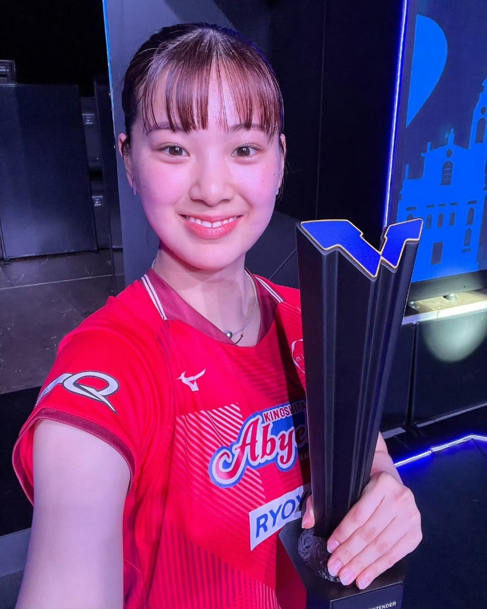 长崎美柚长相俊美,行为举止也很可爱,少女感满满,堪称日乒颜值担当。2025年,她参加的WTT分站国乒基本都没有参加,所以,给人的感觉是她这一年似乎很少打比赛。但其实她打得比赛并不少,并且与前几年相比进步明显。在2025WTT卢布尔雅那球星挑战赛的比赛中,她一路杀入决赛,并战胜木原美悠夺得冠军。