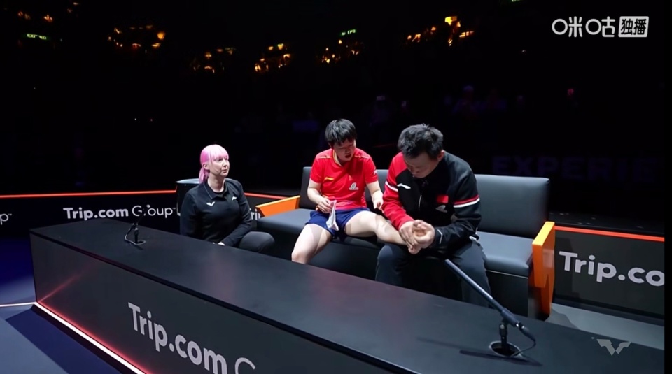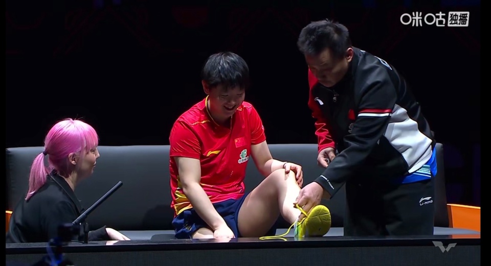 最终本场比赛出现了遗憾的一幕:孙颖莎脚部受伤,大比分2-3落后时退赛,无缘女单决赛的同时,目送蒯曼首进总决赛单打冠军争夺战。