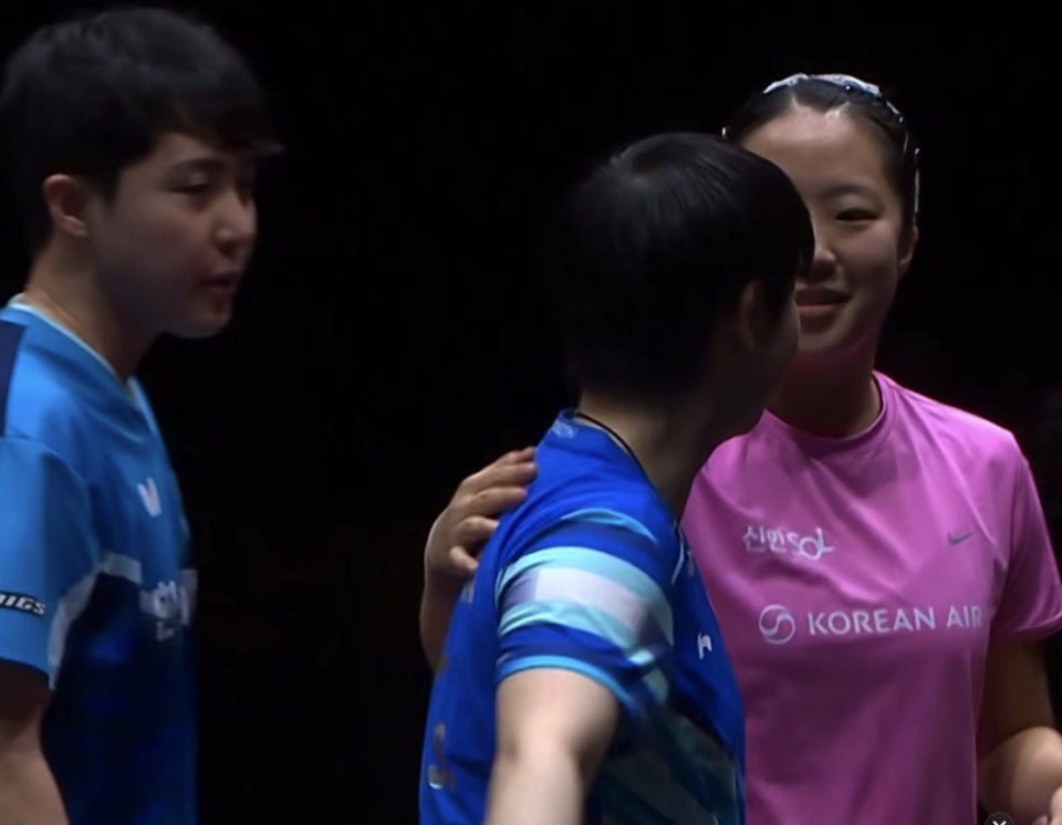 而在比赛结束之后出现了一个非常暖心的举动,申裕斌拍了一下孙颖莎。值得一提的是,申裕斌这次也是带伤作战,当然她的伤势不是很严重,她也知道孙颖莎目前遗憾的心情。