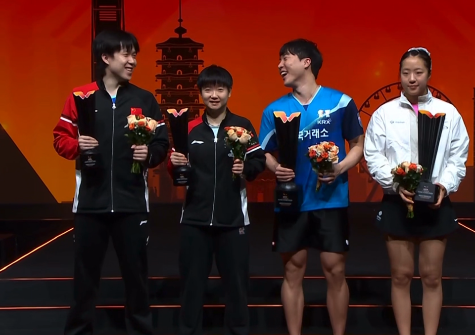 混双颁奖!莎头夺亚军超开心,莎莎与张怡宁乐趣洽谈,合影太暖心