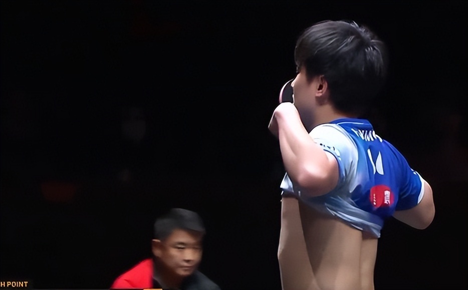 张本智和在拿到决胜一分后,大家可以看看后面王皓的表情多么的沮丧。