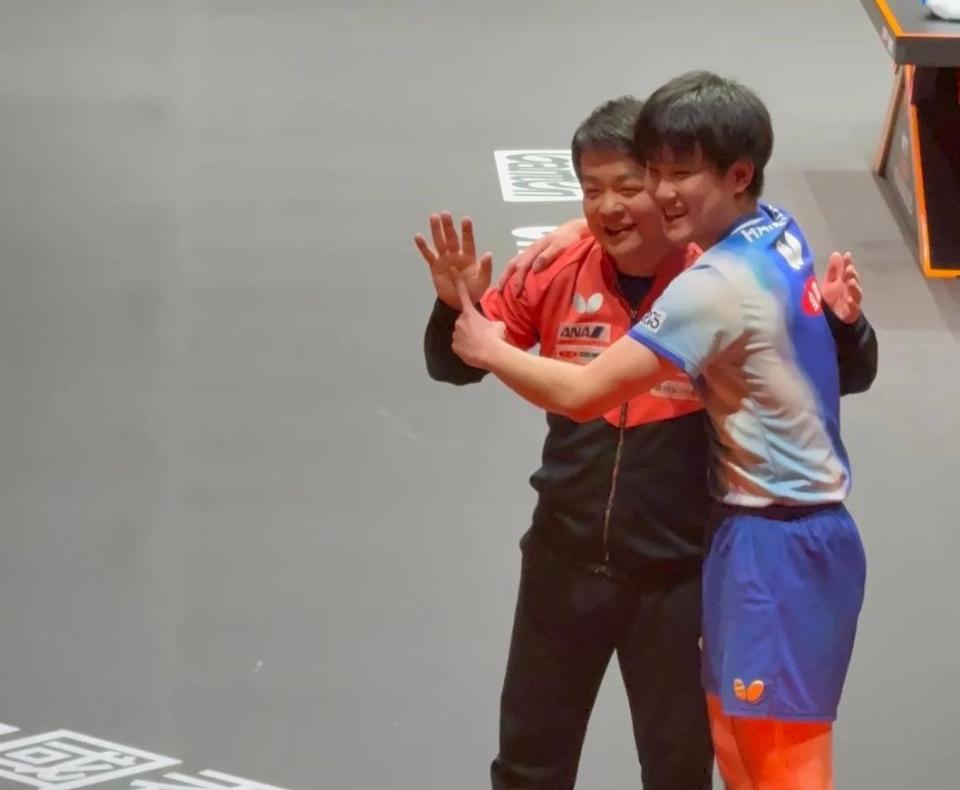 张本智和跪地捂脸!现场摆造型为教练儿子庆生,4次致敬樊振东