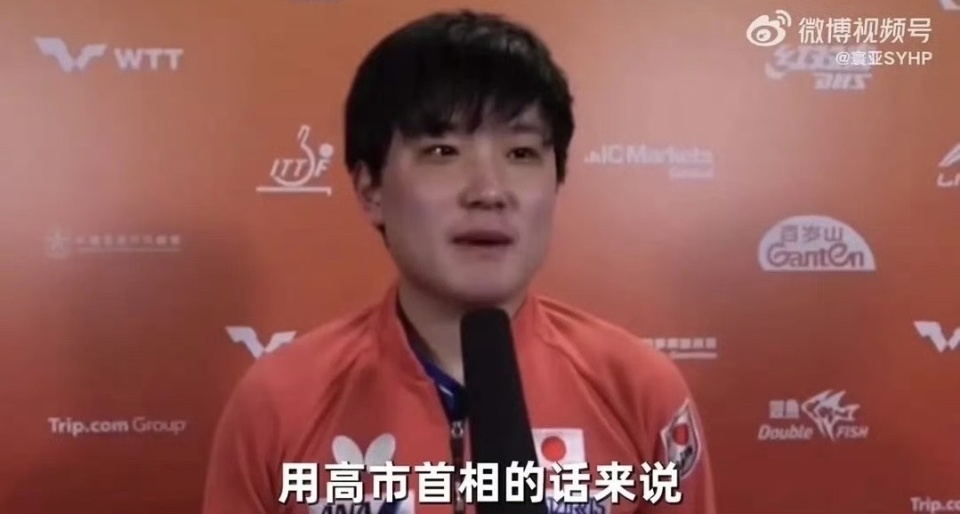 WTT香港总决赛男单决赛前,日本选手张本智和在接受日本记者采访时引用高市早苗的话,引起很大争议。