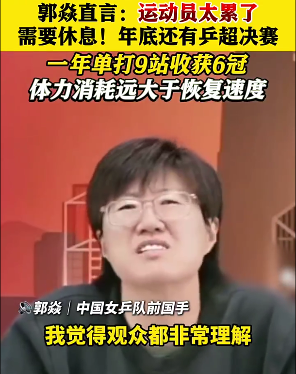 不清楚孙颖莎和王楚钦需要花多长时间彻底康复,但乒坛退役名将郭焱,给两人提出了一个比较人性化的建议,那就是建议孙颖莎和王楚钦,放弃接下来的乒超联赛总决赛。