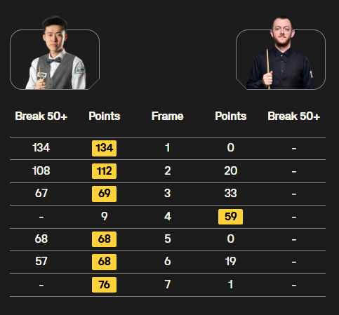 韦克林上来就展现了不俗的状态,首局单杆80分制胜;第2局,两次上手拿下;第3局,轰出一杆破百,3-0领先。第4局,塞尔特扳回一城。