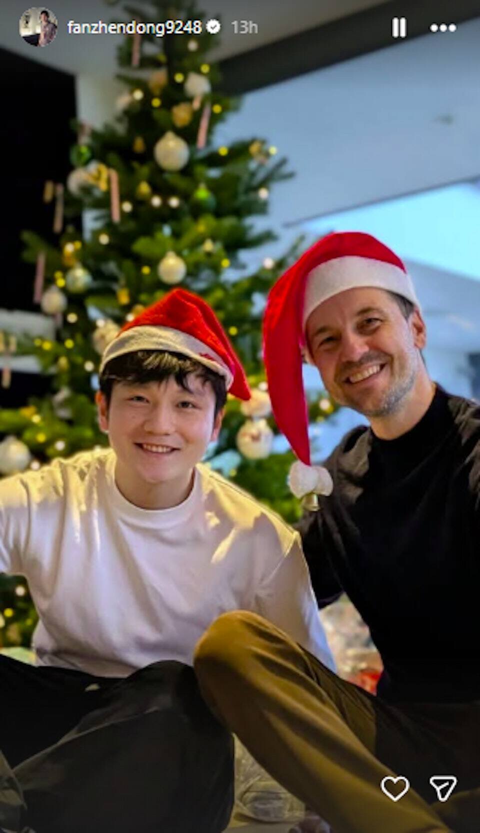 28岁的小胖与44岁的波尔,年纪虽然相差一截,两人在乒乓球坛同场征战多年,早已建立深厚友谊。这是樊振东首次在德国过圣诞,刚退役的波尔主动邀请一起过节。