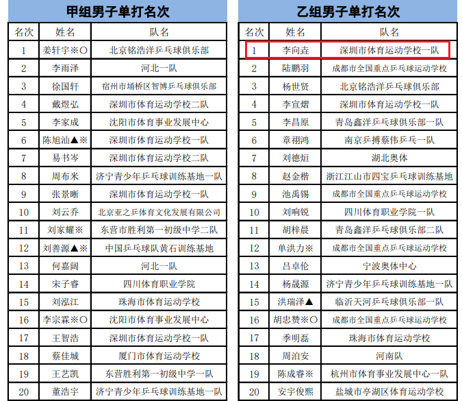 李向垚和陆鹏羽属于老对手,连续3年在国少选拔赛的决赛碰面,2023年李向垚1比4落败,2024年李向垚4比2获胜,2025年则是以4比0横扫了陆鹏羽,他一年一个脚印地不断进步。值得一提的是,在今年的全国少儿乒乓球锦标赛,李向垚也是力压陆鹏羽夺冠。
