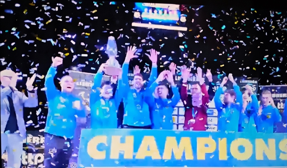 萨尔布吕肯队夺冠后,队员们围成一圈,转圈庆祝。樊振东露出了开心的笑容。他很享受这种氛围。夺冠后,他也可以笑了。