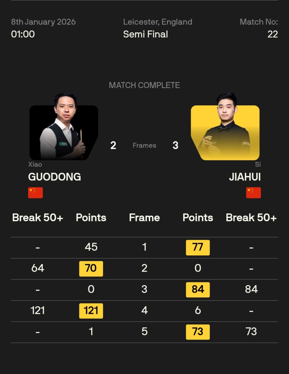 肖国栋 2-3 斯佳辉
