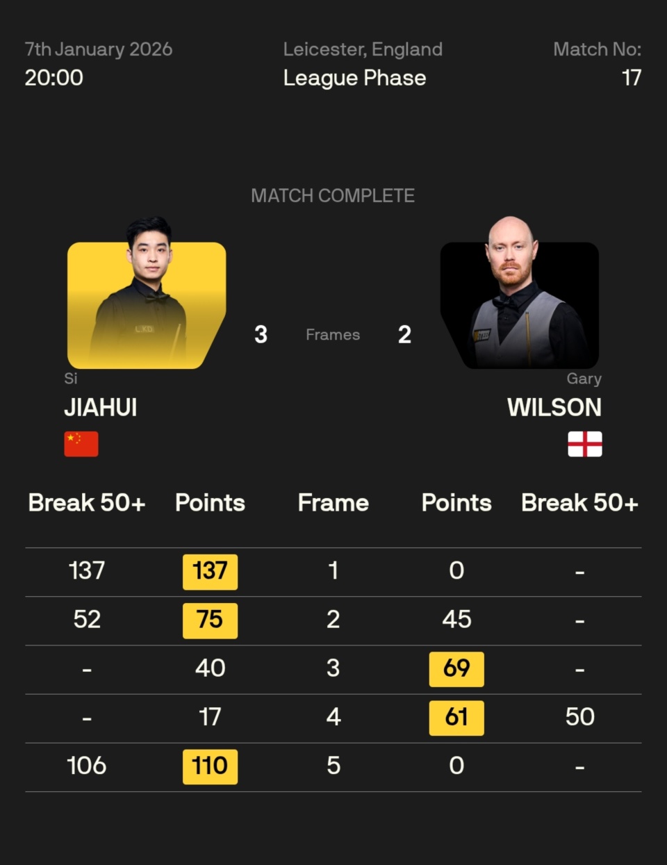 斯佳辉 3-2 加里·威尔逊